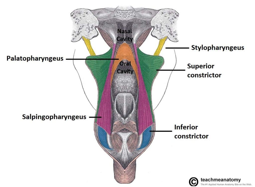 Salpingopharyngeus - Podcast Version TeachMeAnatomy 0:00 / 0:00 1x 0.25x 0.5x 0.75x 1x 1.25x 1.5x 1.75x 2x The salpingopharyngeus is a muscle of the pharynx. In addition to elevating the pharynx, this muscle also widens the Eustachian tube to help equalise the pressure in the middle ear. Attachments: Originates from the Eustachian tube and inserts onto the pharyngeal wall. Action: Elevation of the pharynx during swallowing. Innervation: Vagus nerve (CN X). Blood supply: Ascending palatine branch of facial artery, greater palatine branch of maxillary artery and the pharyngeal branch of ascending pharyngeal artery. By TeachMeSeries Ltd (2025) Fig 3Posterior view of the pharynx. The pharynx has been split down the midline and opened, to show the longitudinal muscles. Pro Feature - 3D Model You've Discovered a Pro Feature Access our 3D Model Library Explore, cut, dissect, annotate and manipulate our 3D models to visualise anatomy in a dynamic, interactive way. Learn More Rate This Article