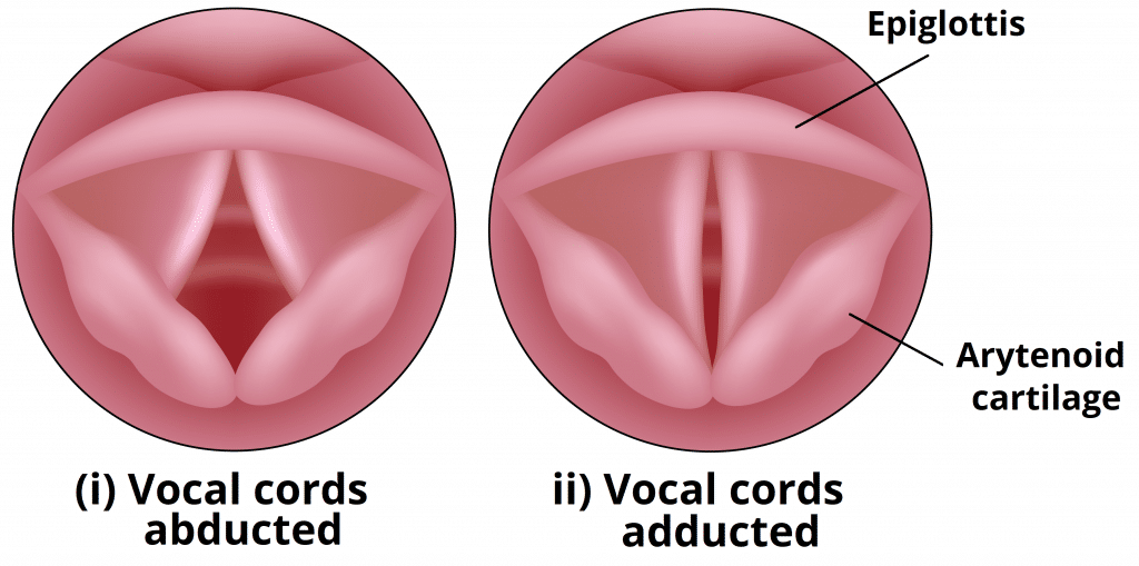 The Larynx - Podcast Version TeachMeAnatomy 0:00 / 0:00 1x 0.25x 0.5x 0.75x 1x 1.25x 1.5x 1.75x 2x The larynx (voice box) is an organ located in the anterior neck. It is a component of the respiratory tract, and has several important functions, including phonation, the cough reflex, and protection of the lower respiratory tract. The structure of the larynx is primarily cartilaginous, and is held together by a series of ligaments and membranes. Internally, the laryngeal muscles move components of the larynx for phonation and breathing. In this article, we will discuss the anatomy of the larynx – its location, structure, vasculature and innervation. We shall also consider its clinical relevance. Pro Feature - 3D Model You've Discovered a Pro Feature Access our 3D Model Library Explore, cut, dissect, annotate and manipulate our 3D models to visualise anatomy in a dynamic, interactive way. Learn More Anatomical Position and Relations The larynx is located in the anterior compartment of the neck, suspended from the hyoid bone, and spanning between C3 and C6. It is continuous inferiorly with the trachea, and opens superiorly into the laryngeal part of the pharynx. It is covered anteriorly by the infrahyoid muscles, and laterally by the lobes of the thyroid gland. The larynx is also closely related to the major blood vessels of neck, which ascend laterally to it. Posterior to the larynx is the oesophagus. This is of clinical relevance during emergency intubation – as pressure can be applied to the cricoid cartilage of the larynx to occlude the oesophagus, and thus prevent regurgitation of gastric contents (known as cricoid pressure or Sellick’s manoeuvre). By TeachMeSeries Ltd (2025) Fig 1 -Anatomical position of the larynx (yellow) in the neck. It is continuous with the trachea inferiorly and the pharynx superiorly. Pro Feature - Dissection Atlas The superior laryngeal nerve is closely associated with the superior thyroid artery. The superior laryngeal nerve is closely associated with the superior thyroid artery. You've Discovered a Pro Feature Access our Dissection Image Library Enhance your understanding with high-resolution dissection images showcasing real-life anatomy. Learn More Anatomical Structure The larynx is formed by a cartilaginous skeleton, which is held together by ligaments and membranes. The laryngeal muscles act to move the components of the larynx for phonation and breathing. More information about each of these structures can be found in their respective sections. The internal cavity of the larynx can be divided into three sections: Supraglottis – From the inferior surface of the epiglottis to the vestibular folds (false vocal cords). Glottis – Contains vocal cords and 1cm below them. The opening between the vocal cords is known as rima glottidis, the size of which is altered by the muscles of phonation. Subglottis – From inferior border of the glottis to the inferior border of the cricoid cartilage. The interior surface of the larynx is lined by pseudostratified ciliated columnar epithelium. An important exception to this is the true vocal cords, which are lined by a stratified squamous epithelium. Vasculature The arterial supply to the larynx is via the superior and inferior laryngeal arteries: Superior laryngeal artery – a branch of the superior thyroid artery (derived from the external carotid). It follows the internal branch of the superior laryngeal nerve into the larynx. Inferior laryngeal artery – a branch of the inferior thyroid artery (derived from the thyrocervical trunk). It follows the recurrent laryngeal nerve into the larynx. Venous drainage is by the superior and inferior laryngeal veins. The superior laryngeal vein drains to the internal jugular vein via the superior thyroid, whereas the inferior laryngeal vein drains to the left brachiocephalic vein via the inferior thyroid vein. Innervation The larynx receives both motor and sensory innervation via branches of the vagus nerve: Recurrent laryngeal nerve – provides sensory innervation to the infraglottis, and motor innervation to all the internal muscles of larynx (except the cricothyroid). Superior laryngeal nerve – the internal branch provides sensory innervation to the supraglottis, and the external branch provides motor innervation to the cricothyroid muscle. By Truth-seeker2004 [CC-BY-SA-3.0], via Wikimedia Commons Fig 2Overview of the major branches of the vagus nerve Clinical Relevance Vocal Cord Paralysis The vocal cords are responsible for the production of speech. Their movement is controlled by the intrinsic muscles of the larynx – the majority of which are innervated by the recurrent laryngeal nerve (an exception is the cricothyroid muscle; innervated by the external laryngeal nerve). Due to its long course, the recurrent laryngeal nerve is susceptible to damage. Causes of RLN palsy include: Apical lung tumour Thyroid cancer Aortic aneurysm Cervical lymphadenopathy Iatrogenic (particularly during thyroid surgery due to the close relationship with the inferior thyroid artery). In unilateral RLN palsy, one vocal cord is paralysed. The other vocal cord tends to compensate, and speech is not affected to a great degree, although the patient may experience hoarseness of voice. In cases of bilateral palsy, both vocal cords are paralysed in a position between adduction and abduction. Breathing is impaired, and phonation cannot occur. In situations where the nerves are only partially damaged, the vocal folds become paralysed in a fully adducted position. If this occurs bilaterally, the rima glottidis (space between the vocal cords) is completely closed, and emergency surgical intervention is required to restore the airway. Adobe Stock, Licensed to TeachMeSeries Ltd Fig 3The vocal cords. In bilateral partial recurrent laryngeal palsy, the vocal cords are paralysed in the fully adducted position. Do you think you’re ready? Take the quiz below Pro Feature - Quiz The Larynx Question 1