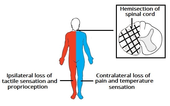 Brown-Séquard syndrome. This is rarely seen in clinical practice, but does illustrate the decussation of the sensory pathways.