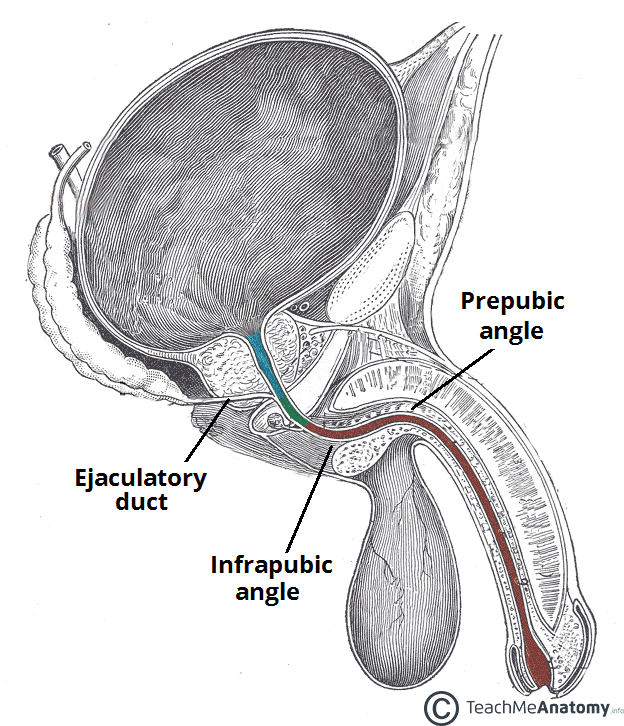 The urethra transports urine from the bladder to its external opening in the floor of the pelvis. The urethra varies in anatomy between males and females. The female urethra only spans a short distance to reach the perineum. However, the route of the male urethra is longer, as it passes through the prostate and corpus spongiosum of the penis.