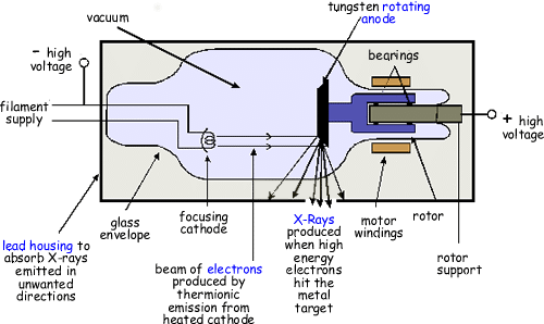 Plain Film X-Ray - Podcast Version TeachMeAnatomy 0:00 / 0:00 1x 0.25x 0.5x 0.75x 1x 1.25x 1.5x 1.75x 2x Plain film x-ray is the most common diagnostic radiological modality used in hospitals today. They were first discovered and used for imaging purposes by Wilhelm Röntgen on 8th November 1895, when he took an image of his wife’s hand. In this article, we shall look at the basic science underpinning x-rays, and the principles of their interpretation. Pro Feature - 3D Model You've Discovered a Pro Feature Access our 3D Model Library Explore, cut, dissect, annotate and manipulate our 3D models to visualise anatomy in a dynamic, interactive way. Learn More Basic Principles X-rays are a type of electromagnetic radiation (just like visible light). There are three criteria that must be met to allow electromagnetic radiation to be used for imaging purposes: Ability to create to the electromagnetic radiation at the wavelength required Ability to focus the radiation on a particular area Ability to detect the radiation once it has passed through the patient. The radiation is created when an electric current is generated from a high voltage generator. This causes electrons to “boil-off” from the cathode end of an X-ray tube assembly. These electrons are emitted from a filament on the cathode and rush towards a target material known as the anode. This process is known as thermionic emission. The electrons emitted by the cathode rush towards the anode, which holds a disc made of tungsten. When the electrons collide with the tungsten, several interactions occur at the atomic level. One of these interactions causes electrons to be expelled from the outer orbits of the atoms releasing a X-ray photon. Energy levels of the X-ray photon will vary and can be adjusted when selecting a parameter known as kVP or kilovolts peak. These X-rays then travel through a focusing cup, focusing and accelerating the photons towards the area of the body to be imaged. Traditionally, radiographic film was used known as double emulsion film containing silver nitrate. With technological advancements, many instutions will be using a cassette receptor or if newer technology is available, a digital plate receptor may be used instead. These receptors are placed behind the patient to capture the x-ray photons that are transmitted through the patient and ultimately form the image. <a href="https://pulseradeducation.com"> Pulse Radiology Education</a> Fig 1How an x-ray is generated. Interpreting an X-Ray The interpretation of an x-ray film requires sound anatomical knowledge, and an understanding that different tissue types absorb x-rays to varying degrees: High density tissue (e.g. bone) – absorb x-rays to a greater degree, and appear white on the film. Low density tissue (e.g the lungs) – absorb x-rays to a lesser degree, and appear black on the film. Intermediate density tissue (e.g. muscle and fat) – appears as shades of grey on the x-ray film. It is important to appreciate that x-rays only give a 2D superimposed view of the body part that has been imaged. Therefore, it may be necessary to take multiple views of the same area from different angle (e.g. in cases of suspected fracture), to gain a full understanding of the injury. By Mikael Häggström. Based on source images by ZooFari, Stillwaterising and Gray's Anatomy [CC BY-SA 3.0], via Wikimedia Commons Fig 2Illustration of the mediastinal structures in a normal chest radiograph. Comparison to Other Imaging Techniques The biggest advantage with plain film X-rays is the amount of radiation involved. It offers lower dosage compared to CT, and certain studies are performed relatively quickly (Chest X-rays). They are often used as an initial screening to rule out anything obvious before an advanced modality is used such as CT or MR. However, plain film X-rays procedures are being replaced by CT and MR due to advancements in technology. There are CT scanners available on the market now that offer radiation dosage levels as low as plain film X-rays. Below is a summary table of the common imaging modalities. Depending on the tissue being imaged, the urgency of the investigation and the level of detail required, any of these techniques may be preferred: Factor CT (CT abdo used as example) MRI X-ray (CXR used as example) Ultrasound Duration 3-7 minutes 30-45 min 2-3 min 5-10 minutes Cost Cheaper Expensive Cheap Cheap Dimensions 3 3 2 2 Soft tissue Poor detail Excellent detail Poor detail Poor detail Bone Excellent detail Poor detail Excellent detail Poor detail Radiation 10mSv None 0.15mSv None Do you think you’re ready? Take the quiz below Pro Feature - Quiz Plain Film X-Ray Question 1 of 3 Submitting... Skip Next Rate question: You scored 0% Skipped: 0/3 1800 More Questions Available Upgrade to TeachMeAnatomy Pro Challenge yourself with over 1800 multiple-choice questions to reinforce learning Learn More Rate This Article