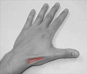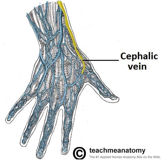 The Anatomical Snuffbox - Podcast Version TeachMeAnatomy 0:00 / 0:00 1x 0.25x 0.5x 0.75x 1x 1.25x 1.5x 1.75x 2x The anatomical snuffbox (also known as the radial fossa), is a triangular depression found on the lateral aspect of the dorsum of the hand. It is located at the level of the carpal bones, and best seen when the thumb is extended. In the past, this depression was used to hold snuff (ground tobacco) before inhaling via the nose – hence it was given the name ‘snuffbox’. In this article, we shall look at the anatomy of the anatomical snuffbox – its borders, contents, and any clinical correlations. By TeachMeSeries Ltd (2025) Fig 1The left anatomical snuffbox. Note its lateral position on the dorsum of the hand Pro Feature - 3D Model You've Discovered a Pro Feature Access our 3D Model Library Explore, cut, dissect, annotate and manipulate our 3D models to visualise anatomy in a dynamic, interactive way. Learn More Borders As the snuffbox is triangularly shaped, it has three borders, a floor, and a roof: Ulnar (medial) border: Tendon of the extensor pollicis longus. Radial (lateral) border: Tendons of the extensor pollicis brevis and abductor pollicis longus. Proximal border: Styloid process of the radius. Floor: Carpal bones; scaphoid and trapezium. Roof: Skin. (Note: The terms medial and lateral are used in the context of the anatomical position, where the forearm is supinated. Take care when describing these borders, as when observing a patient’s anatomical snuffbox, the forearm is usually pronated). It is important to note that the tendons of the muscles form the borders, not the muscles themselves. By TeachMeSeries Ltd (2025) Fig 2The tendinous borders of the anatomical snuffbox. Pro Feature - Dissection Atlas Borders and contents of the anatomical snuffbox Borders and contents of the anatomical snuffbox You've Discovered a Pro Feature Access our Dissection Image Library Enhance your understanding with high-resolution dissection images showcasing real-life anatomy. Learn More Contents The main contents of the anatomical snuffbox are the radial artery, a branch of the radial nerve, and the cephalic vein: Radial artery – crosses the floor of the anatomical snuffbox, then turns medially and travels between the heads of the adductor pollicis muscle. The radial pulse can be palpated in some individuals by placing two fingers on the proximal portion of the anatomical snuffbox. Superficial branch of the radial nerve – found in the skin and subcutaneous tissue of the anatomical snuffbox. It innervates the dorsal surface of the lateral three and half digits, and the associated area on the back of the hand. Cephalic vein – arises from the dorsal venous network of the hand and crosses the anatomical snuffbox to travel up the anterolateral aspect of the forearm. By TeachMeSeries Ltd (2025) Fig 3Veins of the dorsum of the hand. Cephalic vein highlighted. Clinical Relevance Scaphoid Fracture The scaphoid bone of the hand is the most commonly fractured carpal bone – typically by falling on an oustretched hand (FOOSH). In a fracture of the scaphoid, the characteristic clinical feature is pain and tenderness in the anatomical snuffbox. The scaphoid is at particular risk of avascular necrosis after fracture because of its so-called ‘retrograde blood supply’ which enters at its distal end. This means that a fracture to the middle (or ‘waist’) of the scaphoid may interrupt the blood supply to the proximal part of the scaphoid bone rendering it avascular. Patients with a missed scaphoid fracture are likely to develop osteoarthritis of the wrist in later life. By Gilo1969 (Own work) [CC-BY-SA-3.0], via Wikimedia Commons Fig 4Radiograph of a scaphoid fracture. Adapted from work by Iiibalesiii [CC BY-SA 4.0] Fig 5The blood supply to the scaphoid bone runs from distal to proximal. Do you think you’re ready? Take the quiz below Pro Feature - Quiz The Anatomical Snuffbox Question 1 of 3 Submitting... Skip Next Rate question: You scored 0% Skipped: 0/3 1800 More Questions Available Upgrade to TeachMeAnatomy Pro Challenge yourself with over 1800 multiple-choice questions to reinforce learning Learn More Rate This Article