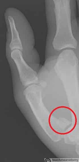 The scaphoid bone of the hand is the most commonly fractured carpal bone – typically by falling on an outstretched hand (FOOSH).