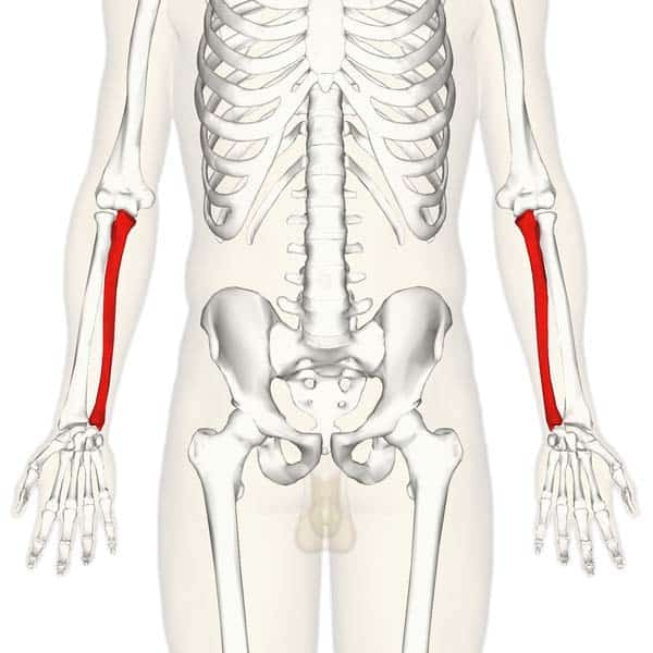 The Ulna - Podcast Version TeachMeAnatomy 0:00 / 0:00 1x 0.25x 0.5x 0.75x 1x 1.25x 1.5x 1.75x 2x The ulna is a long bone in the forearm. It lies medially and parallel to the radius, the second of the forearm bones. The ulna acts as the stabilising bone, with the radius pivoting to produce movement. Proximally, the ulna articulates with the humerus at the elbow joint. Distally, the ulna articulates with the radius, forming the distal radio-ulnar joint. In this article, we shall look at the anatomy of the ulna – its bony landmarks, muscle attachments and clinical correlations. By Anatomography [CC-BY-SA-2.1-jp], via Wikimedia Commons Fig 1.0Overview of the anatomical position of the ulna in the upper limb. Pro Feature - 3D Model You've Discovered a Pro Feature Access our 3D Model Library Explore, cut, dissect, annotate and manipulate our 3D models to visualise anatomy in a dynamic, interactive way. Learn More Proximal Osteology and Articulation The proximal end of the ulna articulates with the trochlea of the humerus. To enable movement at the elbow joint, the ulna has a specialised structure, with bony prominences for muscle attachment. Important landmarks of the proximal ulna are the olecranon, coronoid process, trochlear notch, radial notch and the tuberosity of ulna: Olecranon – a large projection of bone that extends proximally, forming part of trochlear notch. It can be palpated as the ‘tip’ of the elbow. The triceps brachii muscle attaches to its superior surface. Coronoid process – this ridge of bone projects outwards anteriorly, forming part of the trochlear notch. Trochlear notch – formed by the olecranon and coronoid process. It is wrench shaped, and articulates with the trochlea of the humerus. Radial notch – located on the lateral surface of the trochlear notch, this area articulates with the head of the radius. Tuberosity of ulna – a roughening immediately distal to the coronoid process. It is where the brachialis muscle attaches. By TeachMeSeries Ltd (2025) Fig 2The bony landmarks of the proximal ulna. Shaft of the Ulna The ulnar shaft is triangular in shape, with three borders and three surfaces. As it moves distally, it decreases in width. The three surfaces: Anterior – site of attachment for the pronator quadratus muscle distally. Posterior – site of attachment for many muscles. Medial – unremarkable. The three borders: Posterior – palpable along the entire length of the forearm posteriorly Interosseous – site of attachment for the interosseous membrane, which spans the distance between the two forearm bones. Anterior – unremarkable. Distal Osteology and Articulations The distal end of the ulna is much smaller in diameter than the proximal end. It is mostly unremarkable, terminating in a rounded head, with distal projection – the ulnar styloid process. The head articulates with the ulnar notch of the radius to form the distal radio-ulnar joint. Clinical Relevance – Common Fractures of the Ulna The forearm is a common site for bone fractures. Here, we shall look at the common fracture types involving the ulna. A fracture of the ulna alone (not involving the radius) usually occurs as a result of the ulna being hit by an object. The shaft is the most likely site of fracture. In this situation, the normal muscle tone will pull the proximal ulna posteriorly. Less commonly, the olecranon process can be fractured. This is caused by the patient falling on a flexed elbow. The triceps brachii can displace part of the fragment proximally. The ulna and the radius are attached by the interosseous membrane. The force of a trauma to one bone can be transmitted to the other via this membrane. Thus, fractures of both the forearm bones are not uncommon. There are two classical fractures: Monteggia’s Fracture – Usually caused by a force from behind the ulna. The proximal shaft of ulna is fractured, and the head of the radius dislocates anteriorly at the elbow. Galeazzi’s Fracture – A fracture to the distal radius, with the ulna head dislocating at the distal radio-ulnar joint. By Jane Agnes [CC BY-SA 3.0], via Wikimedia Commons Fig 3Monteggia fracture of the radius and ulna Do you think you’re ready? Take the quiz below Pro Feature - Quiz The Ulna Question 1 of 3 Submitting... Skip Next Rate question: You scored 0% Skipped: 0/3 1800 More Questions Available Upgrade to TeachMeAnatomy Pro Challenge yourself with over 1800 multiple-choice questions to reinforce learning Learn More Rate This Article