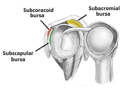 The Shoulder (Glenohumeral) Joint - Podcast Version TeachMeAnatomy 0:00 / 0:00 1x 0.25x 0.5x 0.75x 1x 1.25x 1.5x 1.75x 2x The shoulder joint (glenohumeral joint) is an articulation between the scapula and the humerus. It is a ball and socket-type synovial joint, and one of the most mobile joints in the human body. In this article, we shall look at the anatomy of the shoulder joint – its structure, blood supply, and clinical correlations. Pro Feature - 3D Model You've Discovered a Pro Feature Access our 3D Model Library Explore, cut, dissect, annotate and manipulate our 3D models to visualise anatomy in a dynamic, interactive way. Learn More Anatomical Structure Articulating Surfaces The shoulder joint is formed by an articulation between the head of the humerus and the glenoid cavity (or fossa) of the scapula. This gives rise to the alternate name for the shoulder joint – the glenohumeral joint. Like most synovial joints, the articulating surfaces are covered with hyaline cartilage. The head of the humerus is much larger than the glenoid fossa, giving the joint a wide range of movement at the cost of instability. To reduce the disproportion in surfaces, the glenoid fossa is deepened by a fibrocartilage rim – called the glenoid labrum. By TeachMeSeries Ltd (2025) Fig 1The articulating surfaces of the shoulder joint. Joint Capsule The joint capsule is a fibrous sheath which encloses the structures of the joint. It extends from the anatomical neck of the humerus to the border or ‘rim’ of the glenoid fossa. The joint capsule is lax – permitting greater mobility (particularly abduction). The synovial membrane lines the inner surface of the joint capsule and produces synovial fluid to reduce friction between the articular surfaces. Ligaments Ligaments play an important role in stabilising the shoulder joint: Glenohumeral ligaments (superior, middle and inferior) – extend from the humerus to the glenoid fossa, reinforcing the joint capsule. They act to stabilise the anterior aspect of the joint. Coracohumeral ligament – extends from the base of the coracoid process to the greater tubercle of the humerus. It supports the superior part of the joint capsule. Transverse humeral ligament – extends between the two tubercles of the humerus. It holds the tendon of the long head of the biceps in the intertubercular groove. Coracoacromial ligament – extends between the acromion and coracoid process of the scapula, forming an arch-like structure over the shoulder joint (coracoacromial arch). This resists superior displacement of the humeral head. By TeachMeSeries Ltd (2025) Fig 2The ligaments of the shoulder joint. The transverse humeral ligament is not shown on this diagram Bursae A bursa is a sac-like structure containing a small amount of synovial fluid. It functions to decrease friction between tendons, bone, and skin during movement. There are several bursae present in the shoulder joint: Subacromial – located deep to the deltoid and acromion, and superficial to the supraspinatus tendon and joint capsule. It reduces friction beneath the deltoid, promoting free motion of the rotator cuff tendons. Subscapular – located between the subscapularis tendon and the scapula. It reduces friction on the tendon during movement at the shoulder joint. There are other minor bursae present between the tendons of the muscles around the joint. By TeachMeSeries Ltd (2025) Fig 3The major bursae of the shoulder joint. Movements The shoulder joint is an extremely mobile joint, with a wide range of movement possible: Extension (upper limb backwards in sagittal plane) – posterior deltoid, latissimus dorsi and teres major. Flexion (upper limb forwards in sagittal plane) – pectoralis major, anterior deltoid and coracobrachialis. Biceps brachii weakly assists in forward flexion. Abduction (upper limb away from midline in coronal plane): The first 0-15 degrees of abduction is produced by the supraspinatus. The middle fibres of the deltoid are responsible for the next 15-90 degrees. Past 90 degrees, the scapula needs to be rotated to achieve abduction – that is carried out by the trapezius and serratus anterior. Adduction (upper limb towards midline in coronal plane) – pectoralis major, latissimus dorsi and teres major. Internal rotation (rotation towards the midline, so that the thumb is pointing medially) – subscapularis, pectoralis major, latissimus dorsi, teres major and anterior deltoid. External rotation (rotation away from the midline, so that the thumb is pointing laterally) – infraspinatus and teres minor. Circumduction (moving the upper limb in a circle) – produced by a combination of the movements described above. Mobility and Stability The shoulder joint is one of the most mobile in the body, at the expense of stability. Here, we shall consider the factors the permit movement, and those that contribute towards joint structure. Mobility: Type of joint – ball and socket joint. Bony surfaces – shallow glenoid cavity and large humeral head – there is a 1:4 disproportion in surfaces. A commonly used analogy is the golf ball and tee. Joint capsule – lax Stability: Rotator cuff muscles – surround the shoulder joint, attaching to the tuberosities of the humerus, whilst also fusing with the joint capsule. The resting tone of these muscles act to compress the humeral head into the glenoid cavity. Glenoid labrum – a fibrocartilaginous ridge surrounding the glenoid cavity. It deepens the cavity and creates a seal with the head of humerus, reducing the risk of dislocation. Ligaments – act to reinforce the joint capsule and form the coracoacromial arch. Biceps tendon – it acts as a minor humeral head depressor, thereby contributing to stability. By TeachMeSeries Ltd (2025) Fig 4The rotator cuff muscles, which act to stabilise the shoulder joint. Blood Supply The shoulder joint is supplied by the anterior and posterior circumflex humeral arteries – which are both branches of t